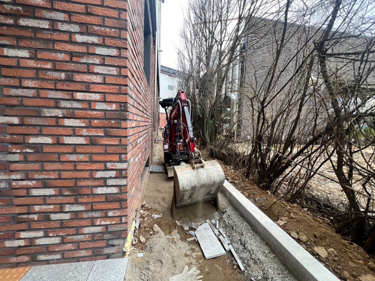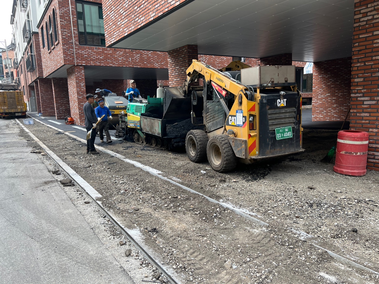 장비가 들어갈 수 있는 넓은 공간에서는 미니 아스팔트 피니셔와 스키드로더를 장비가 들어갈 수 없는 좁은 공간에서는 미니포크레인과 대진이노베이션의 전문가들의 섬세한 손길로 직접 포설을 합니다.