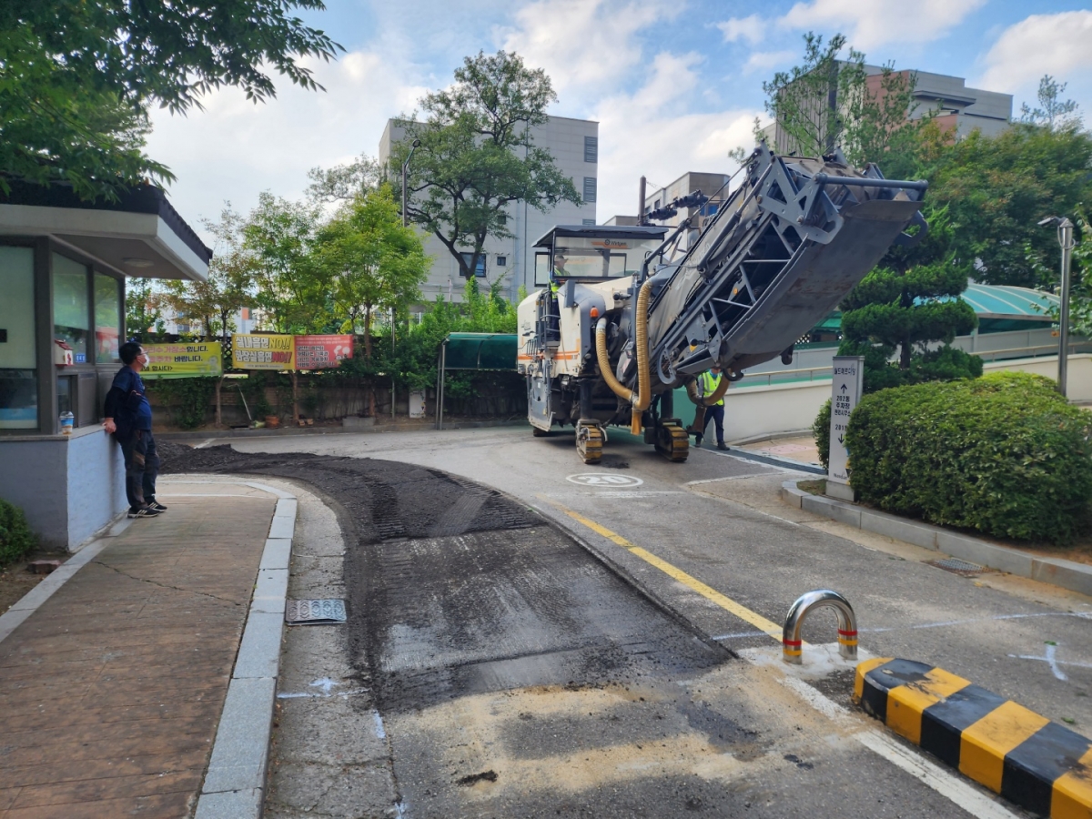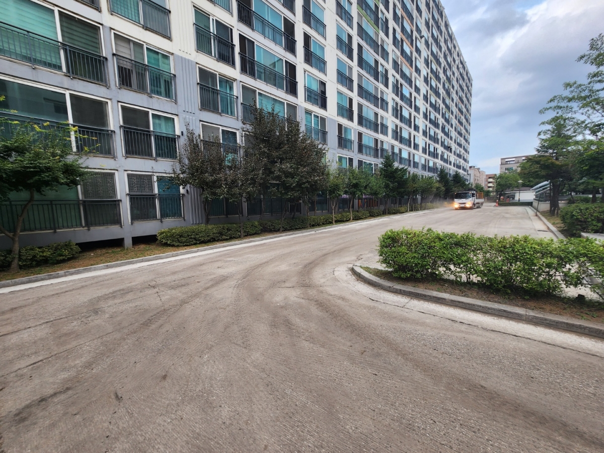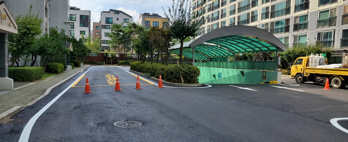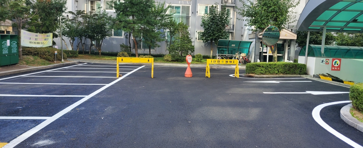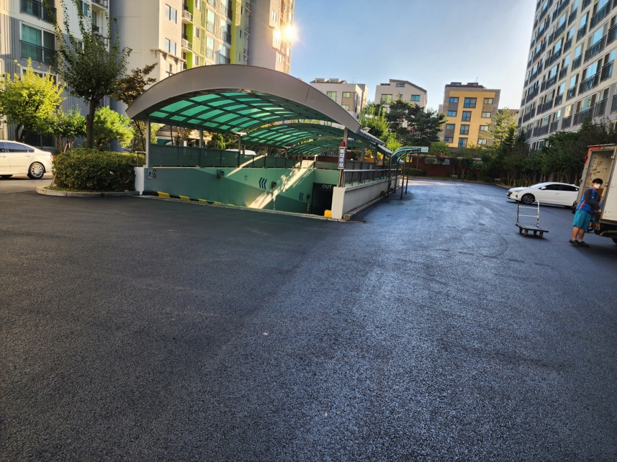 아파트 단지내 주차장 및 진출입로의 아스콘 재포장 공사를 의뢰해 주셨습니다.