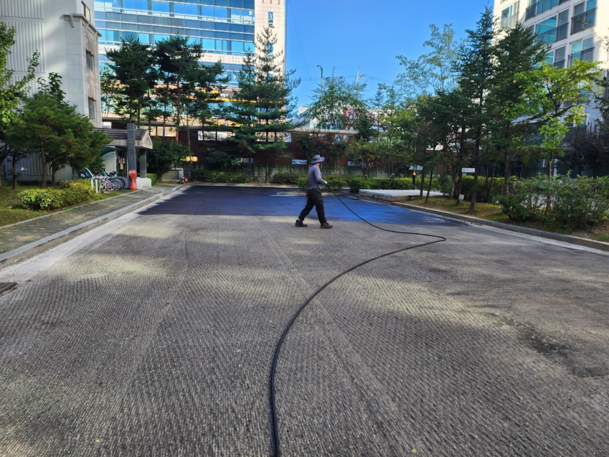 아스콘과 노면이 잘 달라붙을 수 있도록 빈틈없이 꼼꼼하게 살포해주었습니다.