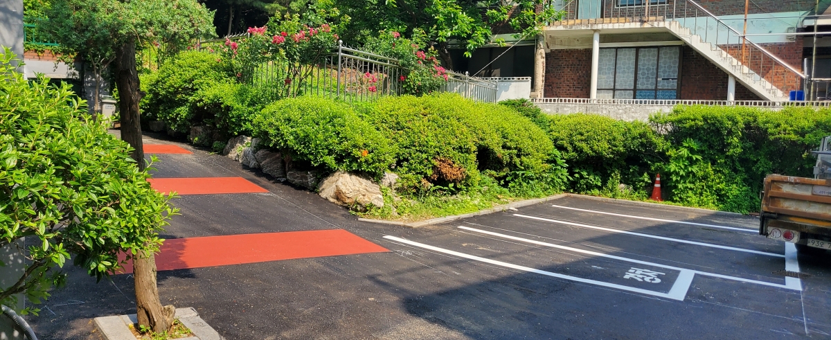 말끔하게 시공된 아스콘도로는 보행자와 차량통행시에 더욱더 안전하고 매끄러운 주행감을 선사할 것 입니다.