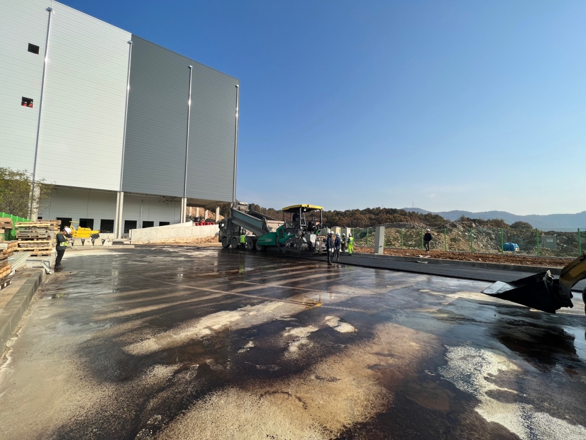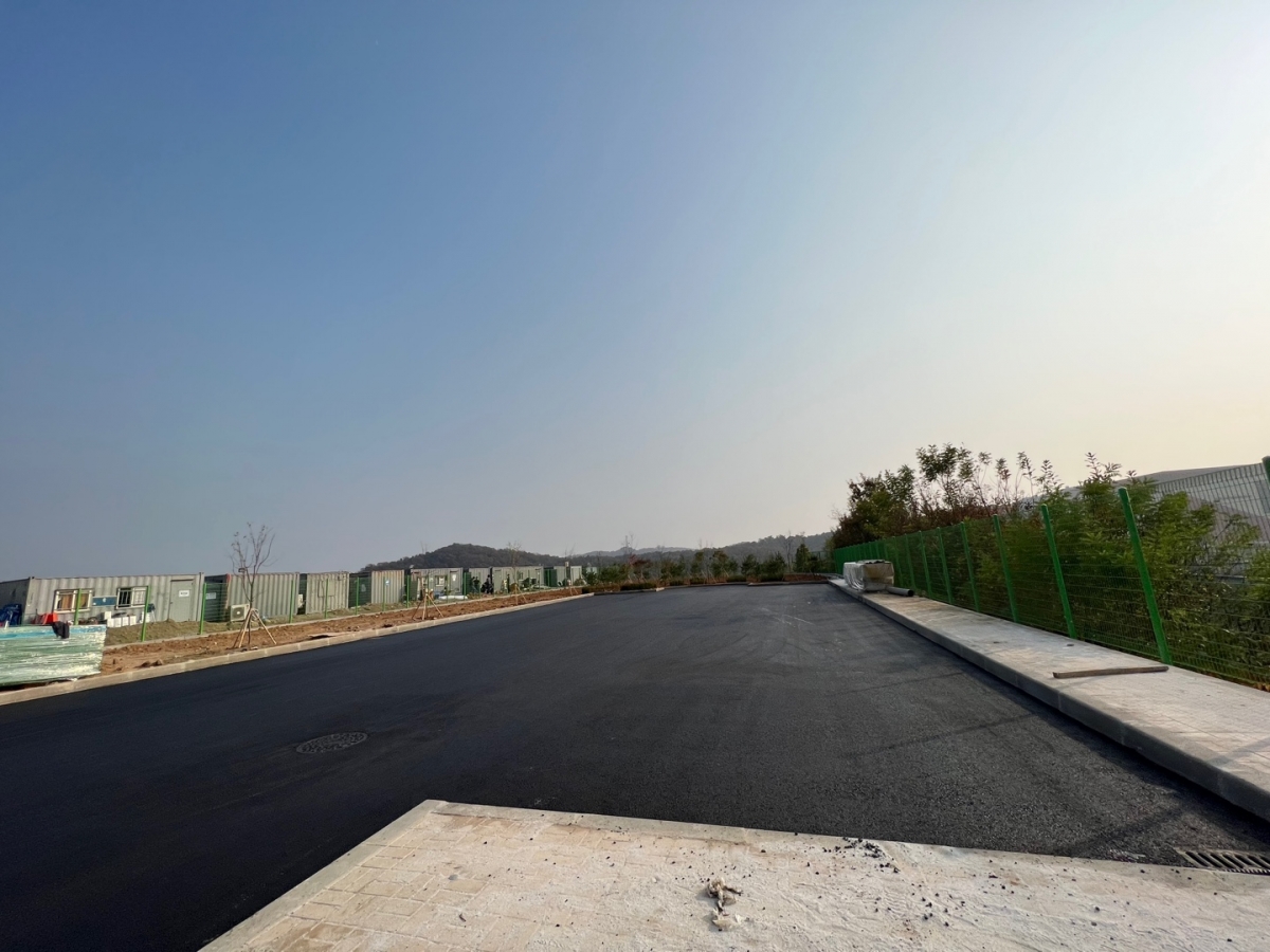 신축물류센터 물류 상·하차구역 및 출입로 전면 아스콘 포장 공사가 완료된 모습입니다.