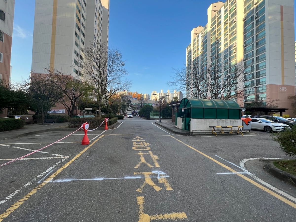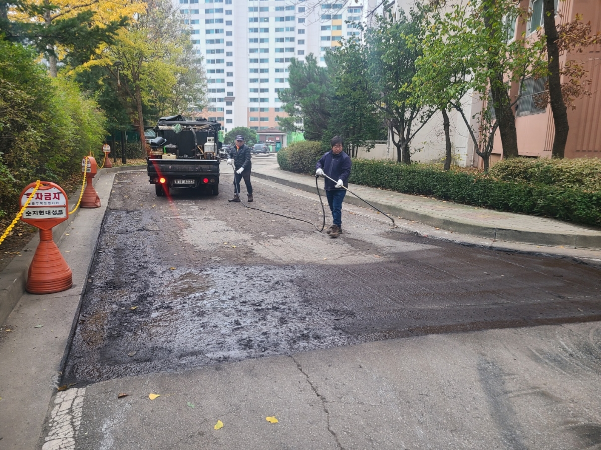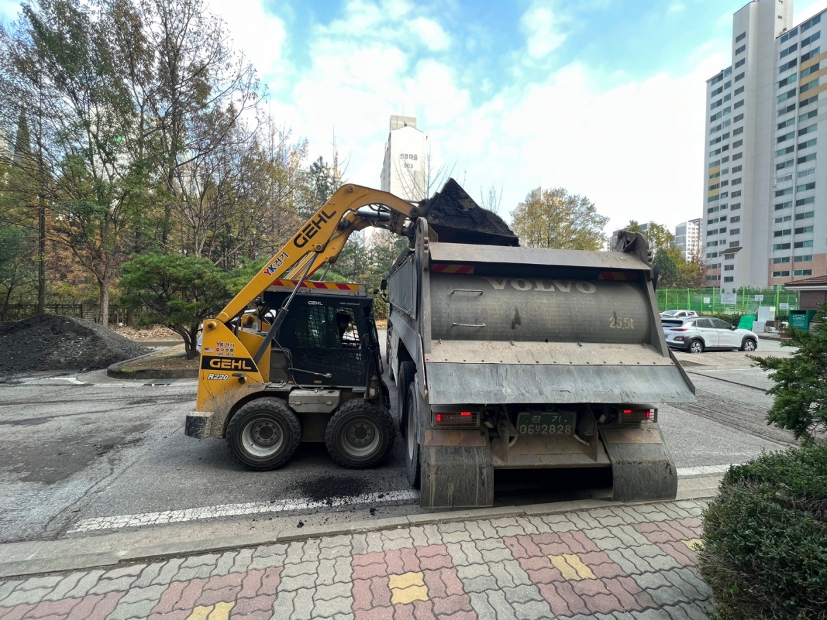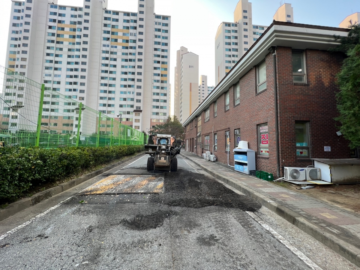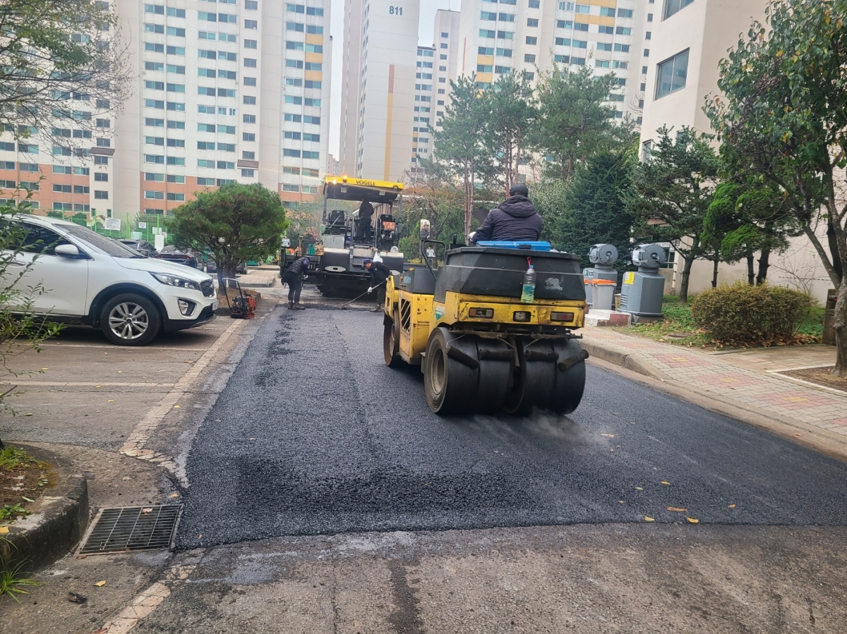 용인시에 위치한 수지현대성우 아파트 단지 내 도로 재포장 현장입니다.